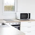 Lägenheten har en kokvrå med mikrovågsugn, vattenkokare och kylskåp samt te/kaffebryggare och luftkonditionering. Gäster kan koppla av i rummen med en terrass.